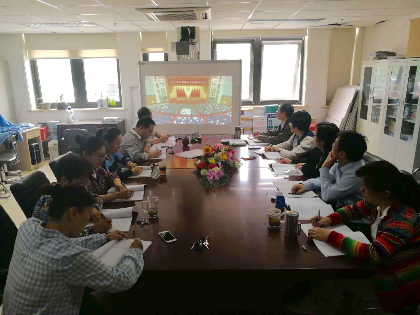 为纪念马克思诞辰200周年,5月11日, 教务处党支部全体 党员在102会议室集中收看直播录像,认真聆听习近平总书记在大会上的重要讲话,回顾马克思为人类解放事业做出的伟大贡献,研讨马克思主义的当代价值,学习习近平新时代中国特色社会主义思想,感受马克思主义穿越历史的真理之光。会议由教务处党支部书记刘文龙主持。